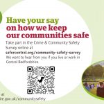 Central Bedfordshire CouncilAs we are approaching the end of the year, we would be very grateful if you would complete our Community Safety Survey to tell us about crime and anti-social behaviour in your area.