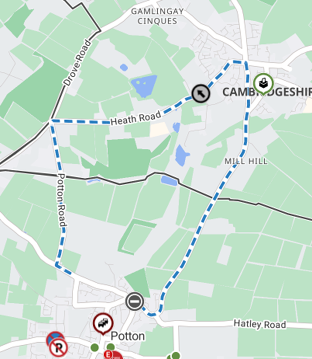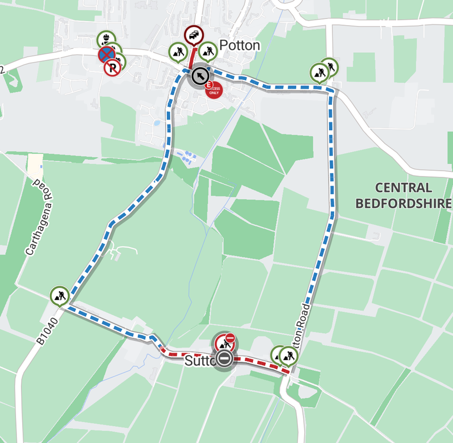 B1040, Heath Road, Potton Road.