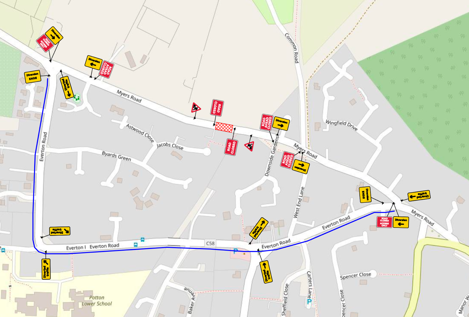 Proposed temporary road closure – Everton Road/Gamlingay Road, Potton